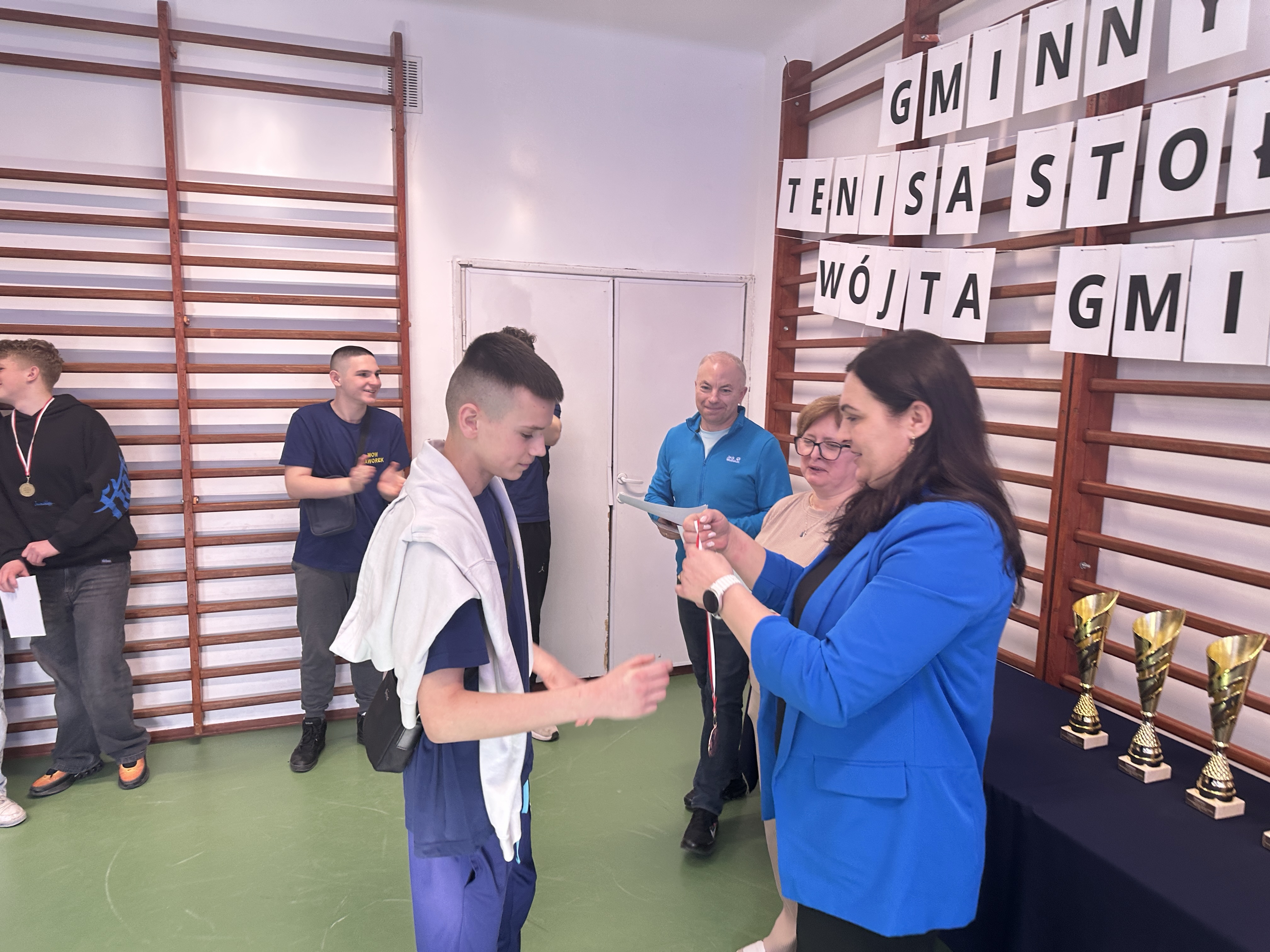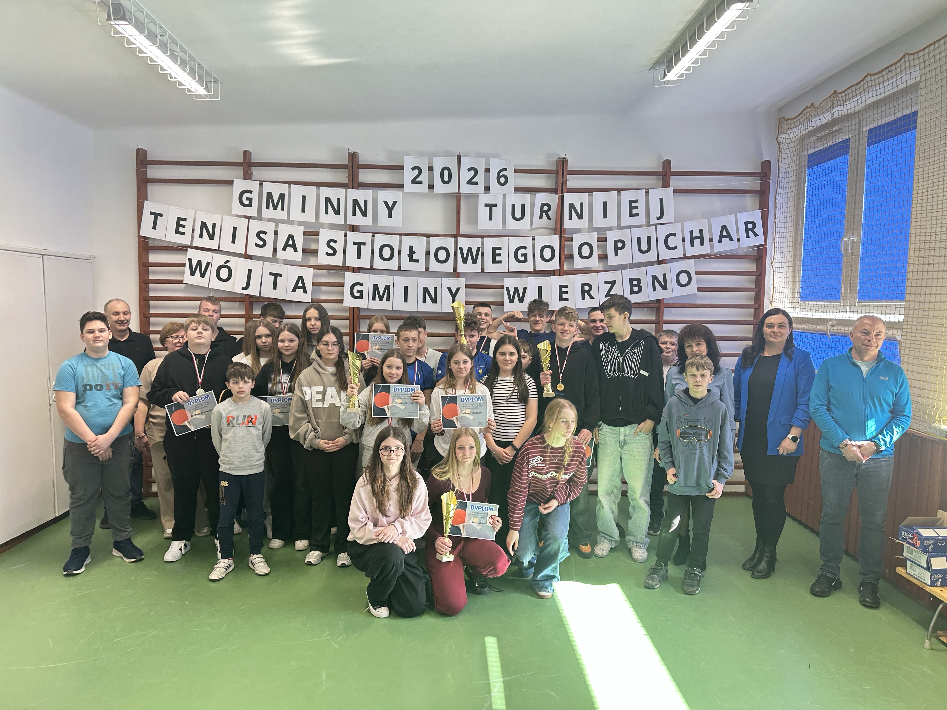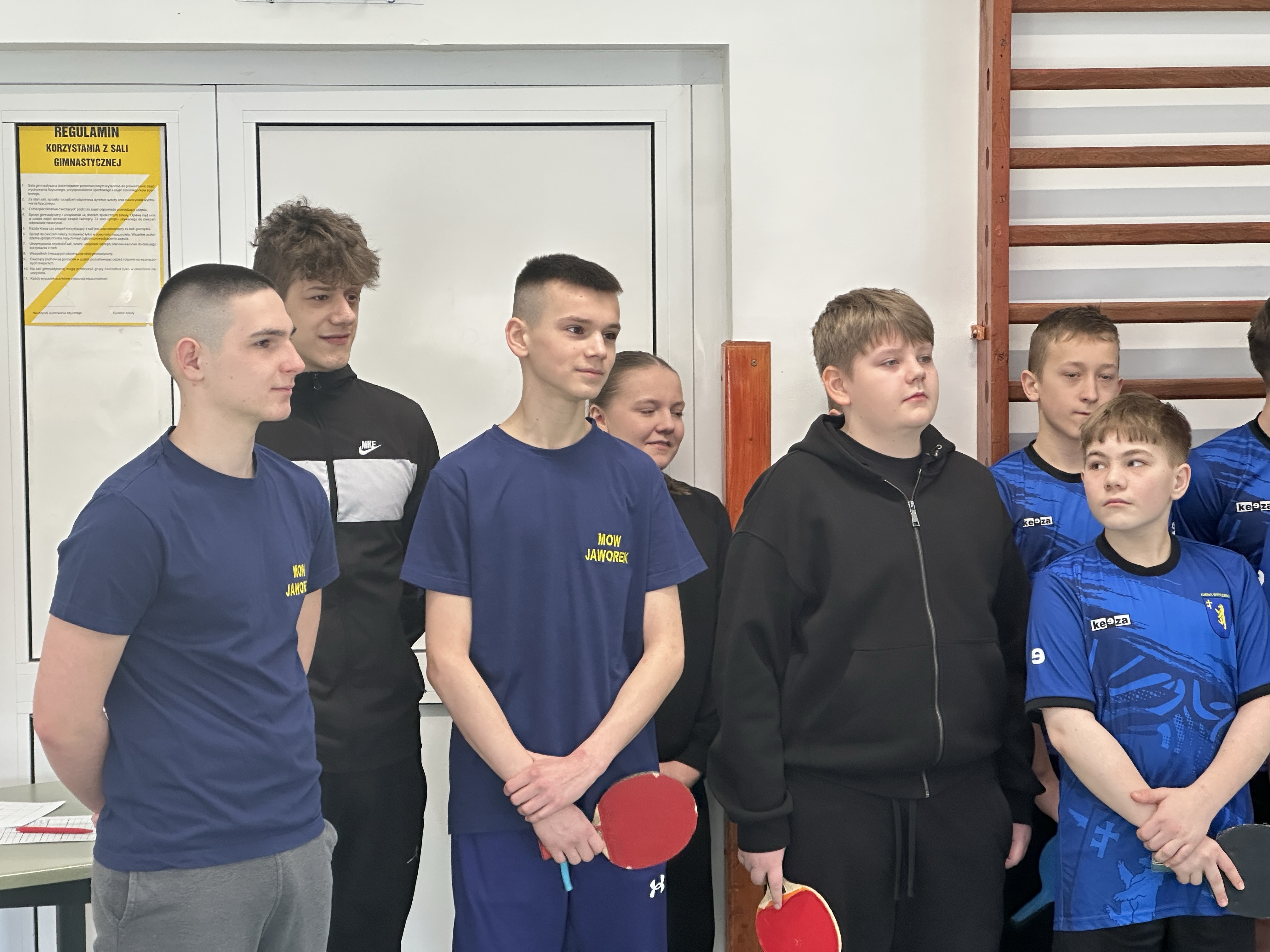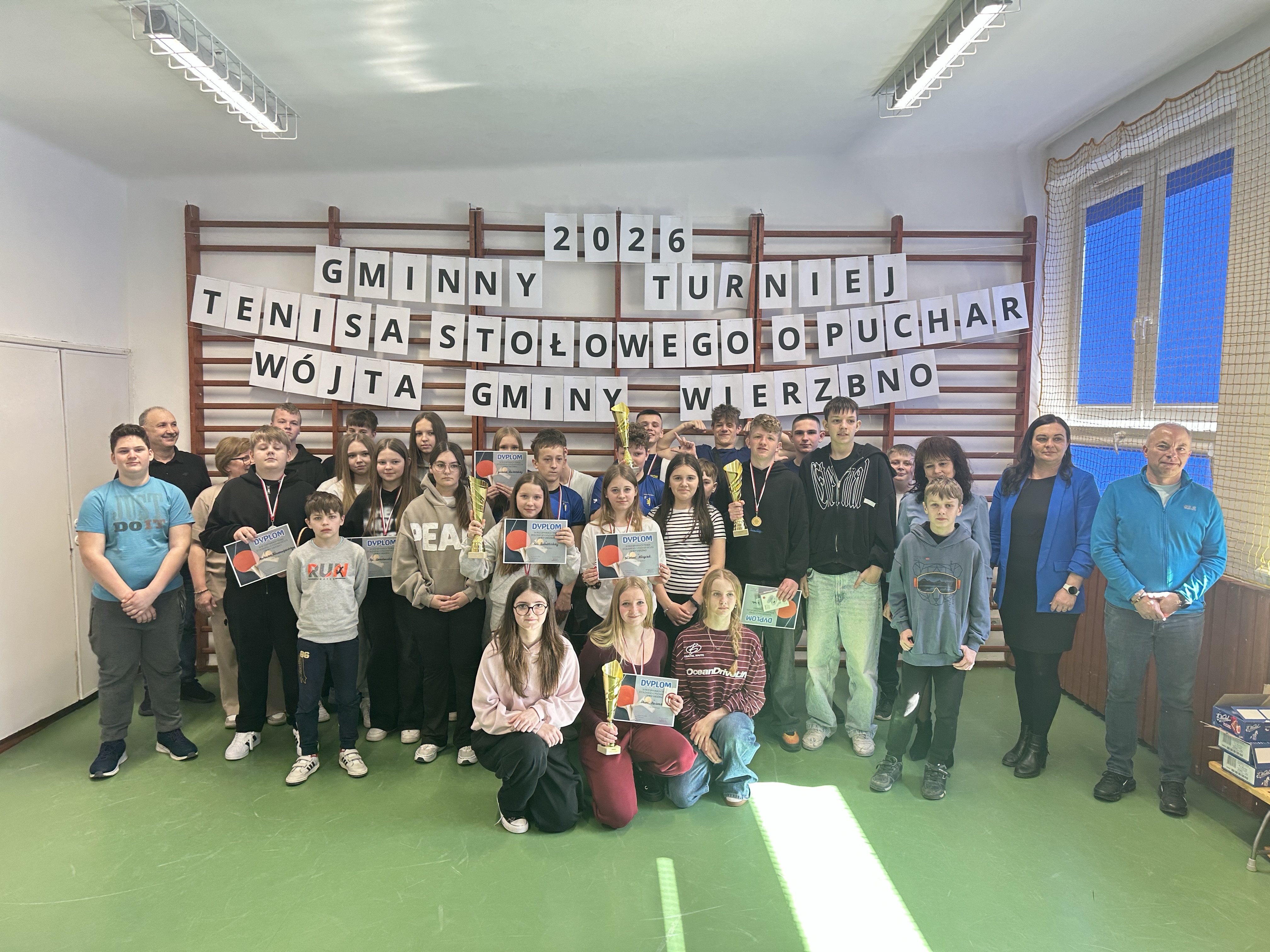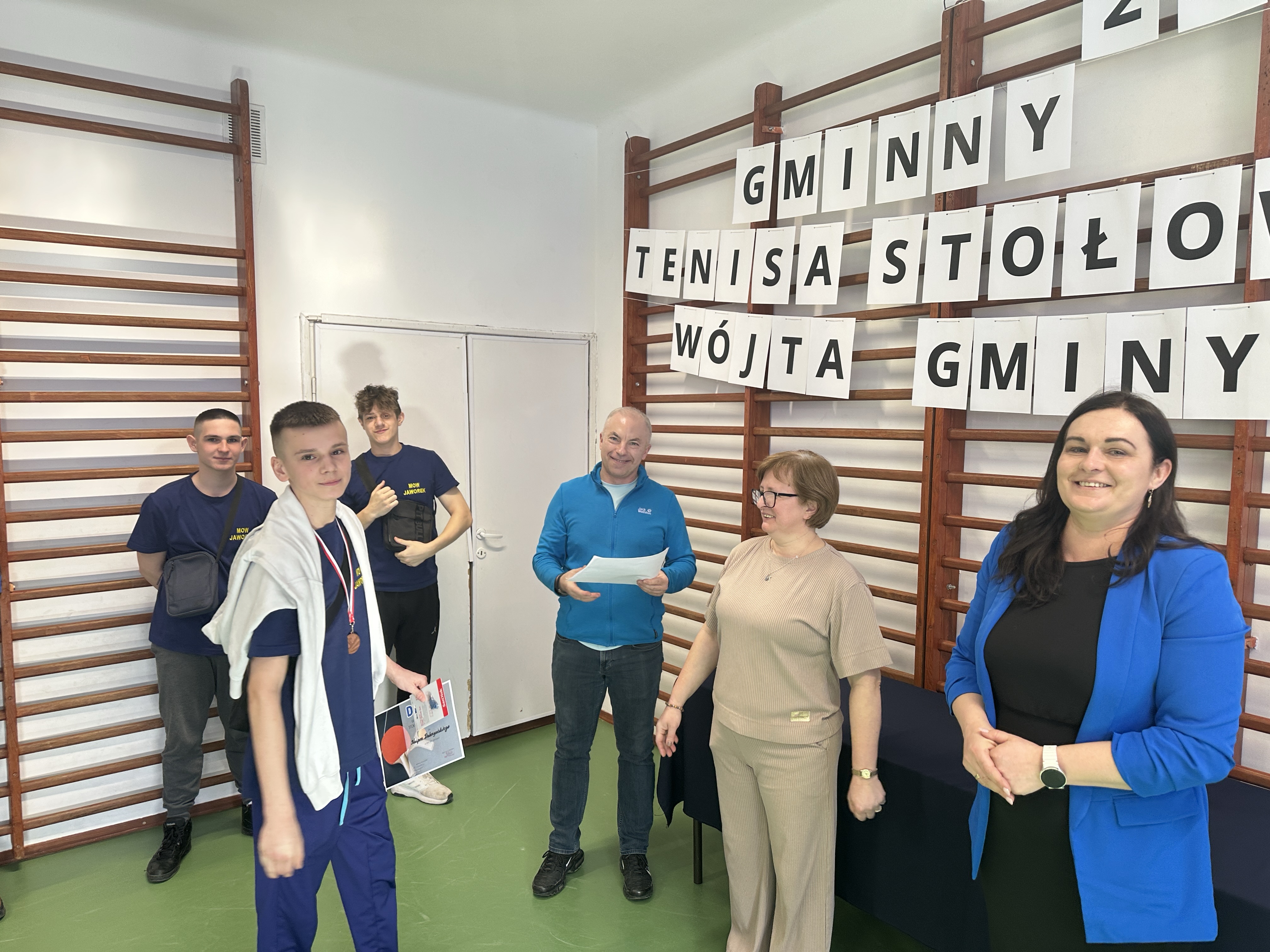 W sali sportowej odbył się Turniej Tenisa Stołowego o Puchar Wójta Gminy Wierzbno. W zawodach wzięli udział młodzi zawodnicy z MOW Jaworek oraz okolicznych szkół w gminie Wierzbno. Turniej był okazją do sportowej rywalizacji, rozwijania pasji do tenisa stołowego oraz integracji uczestników. Rozgrywki odbywały się w kilku kategoriach wiekowych. Zawodnicy prezentowali wysoki poziom sportowy, a mecze były pełne emocji i zaciętej walki o każdy punkt. Turniej przebiegał w przyjaznej atmosferze, zgodnie z zasadami fair play. Duży sukces odniósł nasz wychowanek Kacper, który w kategorii chłopców starszych wywalczył III miejsce, pokazując bardzo dobrą formę oraz duże zaangażowanie w trakcie całych zawodów. Jego determinacja i umiejętności pozwoliły mu stanąć na podium i zdobyć cenne doświadczenie sportowe.
